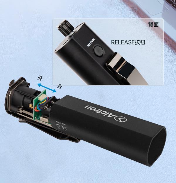 按下RELEASE按鈕,同時將殼身向外拉,就能打開設備,裝入電池即可使用。 雙模式 一鍵切換