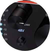48V幻象電源能給電容話筒供電,關(guān)閉此功能后也能接動(dòng)圈話筒使用,兼容性強(qiáng)。電源開關(guān)帶LED指示燈,工作狀態(tài)一目了然。