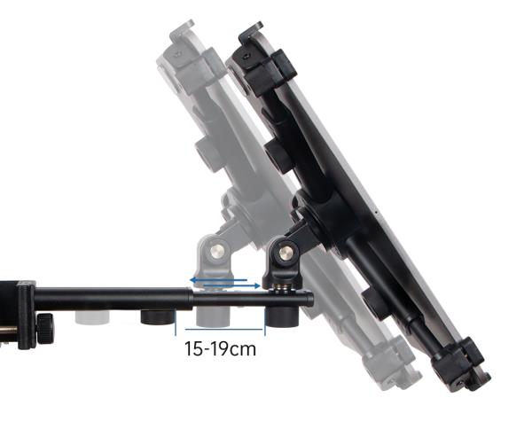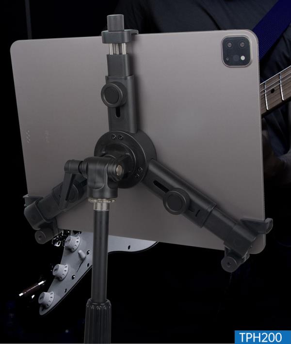 TPH202平板電腦支架,橫桿長度可在15-19cm之間自由伸縮,滿足不同人群觀看樂譜或直播距離需求。
