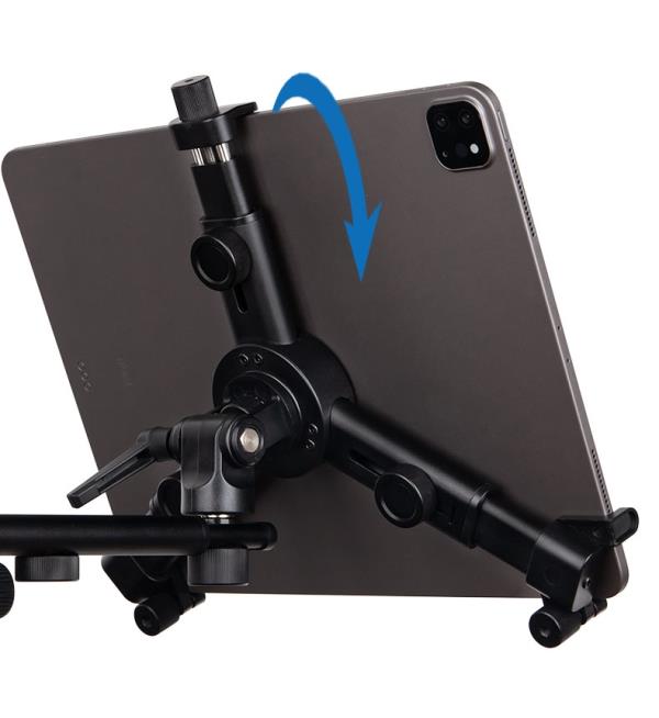 平板支架通過中間旋鈕可以進(jìn)行橫豎屏旋轉(zhuǎn)切換,滿足不同APP或看譜人群的需求。