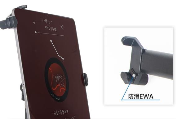 IPAD支臂上設(shè)有厚度調(diào)節(jié)旋鈕、防滑扣和EVA防滑墊,適應(yīng)不同平板尺寸;多重防滑設(shè)計(jì),保護(hù)設(shè)備不被刮花,巨穩(wěn)不晃動(dòng)。