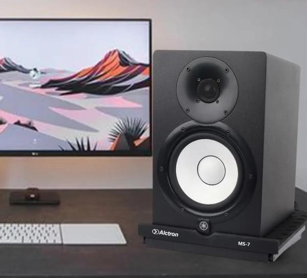 支架底部配備高強度橡膠腳墊,適用多種表面,安全不傷桌面,防滑耐磨,減少音箱的震動